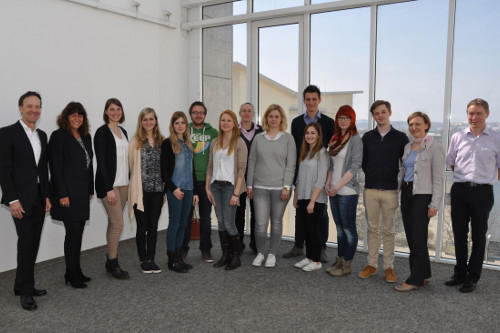 Studieninstitut Geschäftsführer Michael Hosang und Professor Cornelia Zanger mit Studierenden des ersten Jahrgangs 2015 sowie den Fachstudienberatern von links, Foto: TUCed – Institut für Weiterbildung GmbH)