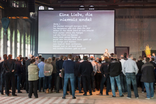 Der von Domset, Agentur für Livekommunikation aus Köln, konzipierte Mitarbeitertag fand seinen Höhepunkt in einer Verabschiedung des Direktors des federführenden Bereiches, in dessen Zuge der einstudierte Song als Ständchen zum Abschied neben dem Bekenntnis zu den gemeinsam erarbeiteten Werten fungierte. Natürlich durften am Abend auch die emotionsgeladenen Filme aus den vorgelagerten Workshops nicht fehlen. Zum feierlichen Abschluss des offiziellen Teils wurde als Höhepunkt das gemeinsam erschaffene Bild enthüllt.