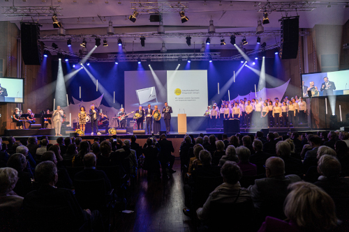 Als Höhepunkt ergänzte B.Effective Orchester und Live-Sänger am Ende der Veranstaltung mit lokalen Chorsängern. Rund 70 Menschen standen beim Finale auf der Bühne und drückten mit dem Song „Eine Sprache“ von der Gruppe „Parallel“ nicht nur das Anliegen des Preisträgers aus, sondern zeigten durch alle Altersstrukturen und Nationalitäten eine einheitliche Vielfalt.