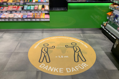 Aus aktuellem Anlass hat die Visuals United AG in Kaarst, bekannt als Fotoboden, mit günstigen Covid-19 Bodenmatten ihr Produktportfolio erweitert. Es wurden einige Designs entwickelt, die die aktuellen Verhalten- und Eintrittsregeln am POS emotionslos kommunizieren können. Weitere Designs sollen sukzessive anhand der aktuellen Nachfrage folgen.