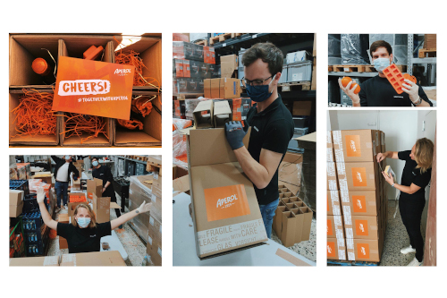 Zusammenstellen der „Aperol Stay Home“ Packages (Foto: Vok Dams)