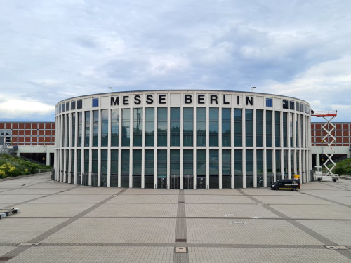 Die Messe Berlin hat Mitte Juni eine Photovoltaikanlage auf dem Dach und an der Außenfassade des Eingangs Messe Süd in Betrieb genommen. Insgesamt sammeln ab jetzt 318 Solarmodule auf 527 m² Sonnenstrahlen ein und wandeln diese in Strom um. Die Spitzenauslastung der Anlage beträgt 90 kWp. Die erzeugte Energie wird direkt in das Berliner Stromnetz eingespeist.