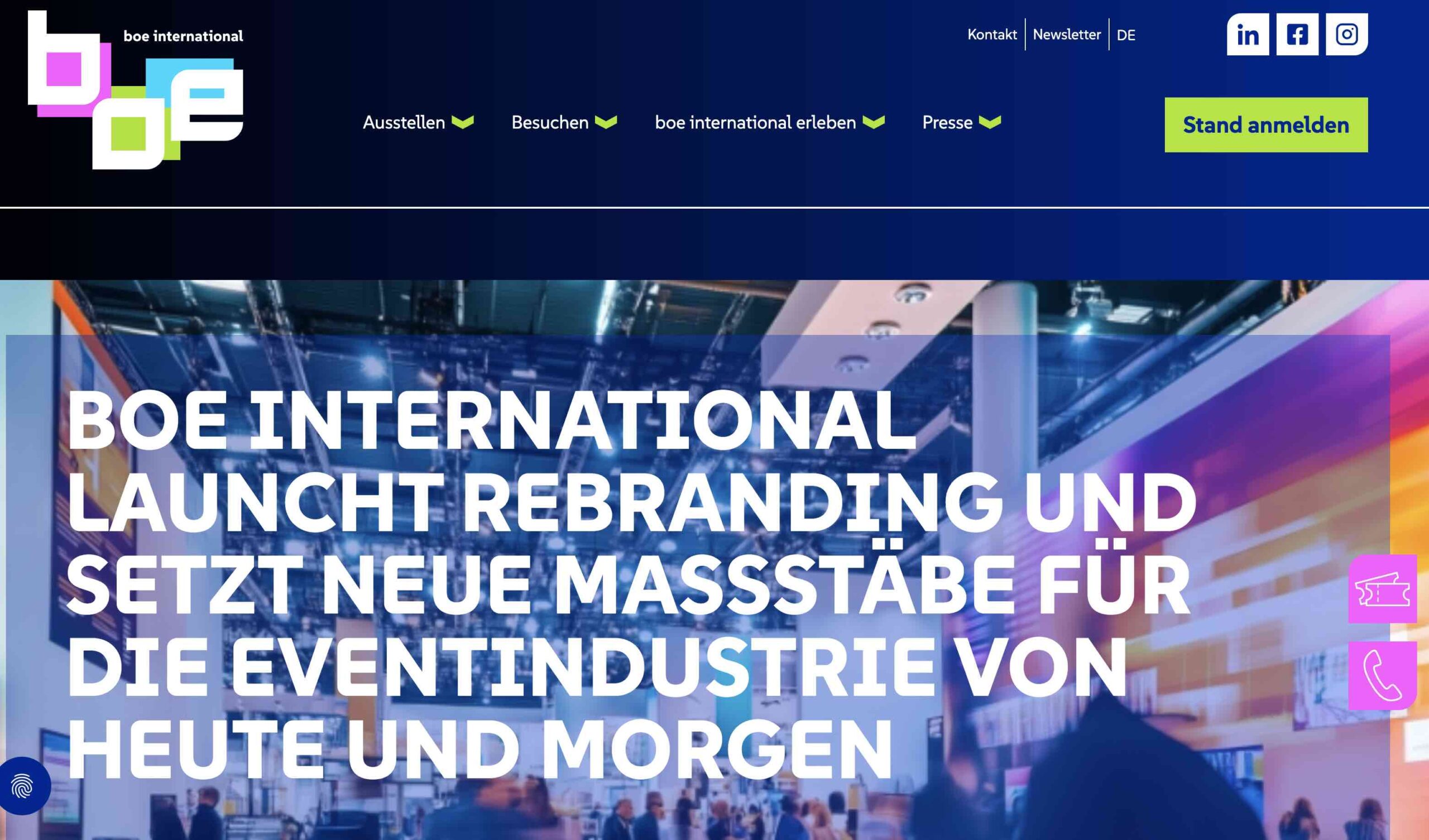 Herzstück des Rebrandings ist das neue Logo – modern, klar und dynamisch gestaltet. Parallel zum neuen Erscheinungsbild wurde auch die Website der boe international überarbeitet. Sie bietet mit neuer Übersicht zielgerichtete Informationen für Aussteller, Fachbesucher und Unternehmen.