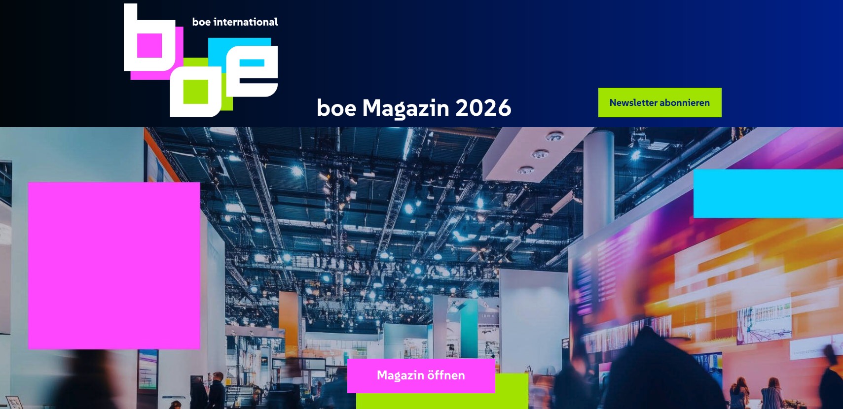 Zur Vorbereitung auf die boe international 2026 hat die Fachmesse ihr neues digitales Messemagazin veröffentlicht. Die Ausgabe zeigt sich im überarbeiteten Design und bietet einen breiten Überblick über Themen, die die Eventbranche aktuell prägen. Dazu zählen Entwicklungen rund um künstliche Intelligenz, multisensorische Gestaltung im Messebau und neue Ansätze der Markeninszenierung. Das Magazin versteht sich als inhaltlicher Auftakt zur boe international, die am 14. und 15. Januar 2026 in Dortmund stattfindet.