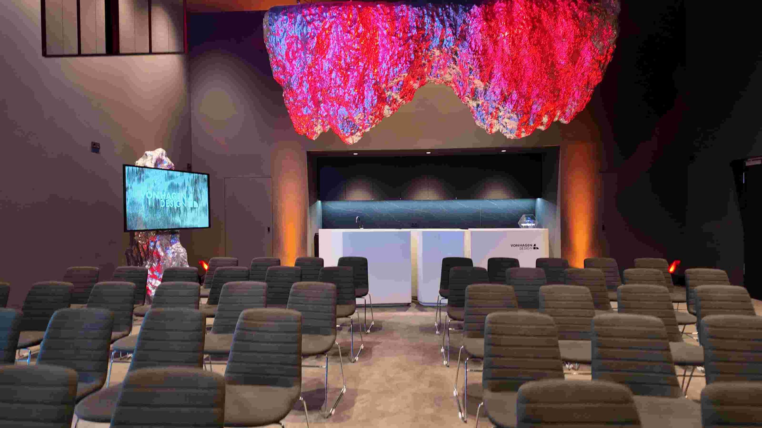Mit dem ersten „Experience Day“ hat von Hagen Design gemeinsam mit den Marken oneled und mpled sowie mit Kunden, internationalen Partnern und Freunden die offizielle Eröffnung des neuen Showrooms The Gravity gefeiert, der als inspirierender Ort für LED-Lösungen und ganzheitliche Markeninszenierungen neue Maßstäbe setzen soll. Eyecatcher war der „schwebende Stein“ von der Euroshop 2026. Hintergrund: von Hagen Design präsentierte sich auf der Euroshop mit einem eigenen Messeauftritt, der Architektur, Kunst und Medientechnik miteinander verband. Auf rund 70 Quadratmetern entstand ein offener Designraum, dessen zentrales Element ein überdimensionaler, umgedrehter Stein war, der an Seilen unter der Hallendecke schwebte.