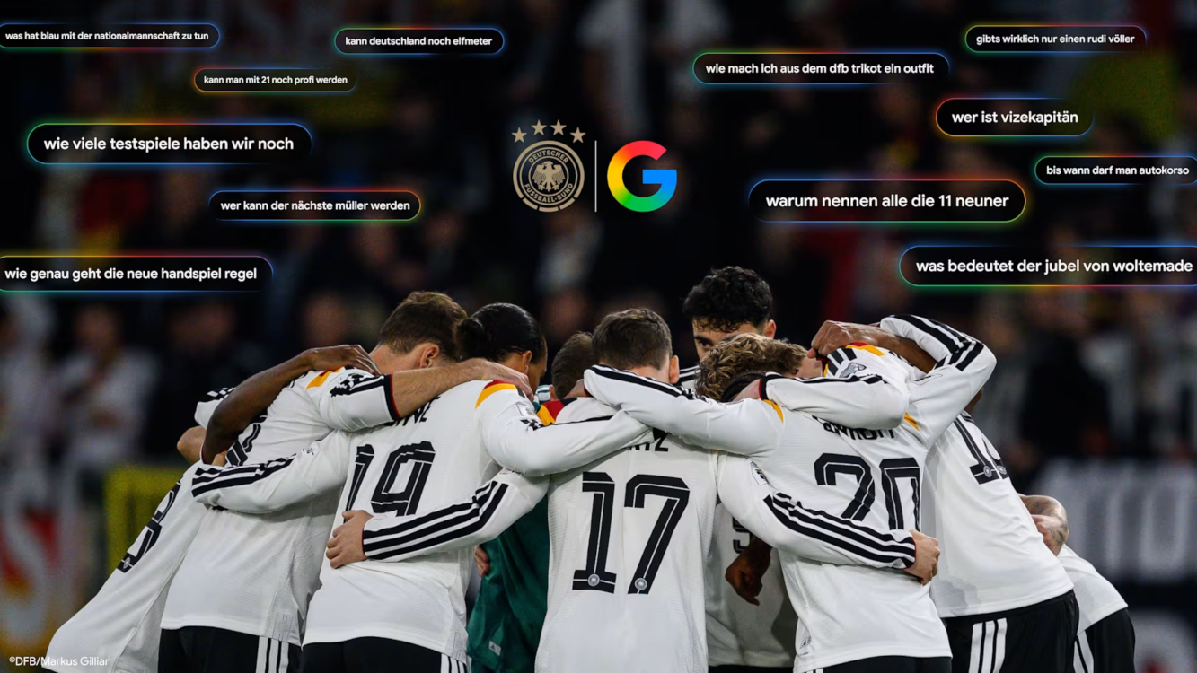 Die gemeinsame Kampagne startet am 1. Juni im TV, in Out-of-Home- und digitalen Kanälen. Im Mittelpunkt sollen dabei die deutschen Fans und ihr großes Interesse an der Männer-Nationalmannschaft stehen. Alleine im vergangenen Monat haben sich die Google-Suchanfragen mit Bezug auf die deutsche Männer-Nationalmannschaft fast verdoppelt (plus 90 Prozent). „Wir schätzen die bestehende Zusammenarbeit mit Google als strategischen und innovationsgetriebenen Partner sehr und freuen uns, dass die Partnerschaft nun erweitert wird“, sagt Dr. Holger Blask vom DFB.