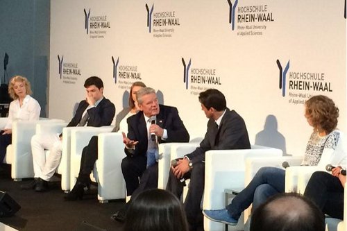 Das Zusammenwachsen Europas als Friedensprojekt – mit dem Anliegen und der Aufforderung an alle Bürger, zur Europawahl zu gehen, besuchte Bundespräsident Joachim Gauck die niederrheinische Grenzstadt Kleve. Eine der Stationen des Bundespräsidenten war die Hochschule Rhein-Waal. Die Eventagentur passepartout, die bereits die Eröffnungsveranstaltungen der Hochschule Rhein-Waal betreut hatte, zeichnete hier für den reibungslosen Ablauf des Besuches verantwortlich.