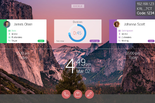 Kickle besteht aus einer Zentraleinheit, die in Verbindung mit einem Touchscreen, Videokamera und Mikrofonen zu einer interaktiven Raumlösung für Unified Communication Anwendungen wird. Über die einfach zu bedienende Benutzeroberfläche lassen sich viele Funktionen steuern: Skype for Business Konferenzen, virtuelles Whiteboard/Flipchart und Application- und Document-Sharing. Kickle unterstützt die drahtlose Übertragung von Inhalten, die von Laptops, Tablets oder Smartphones (iOS, Android, PC, Mac) eingespielt werden, denn das Präsentations-Tool WiPG ist bereits enthalten. Selbst eine Raumbuchungsfunktion (in Verbindung mit MS Exchange) ist vorhanden. Für die Zukunft ist eine Office-Integration vorgesehen.