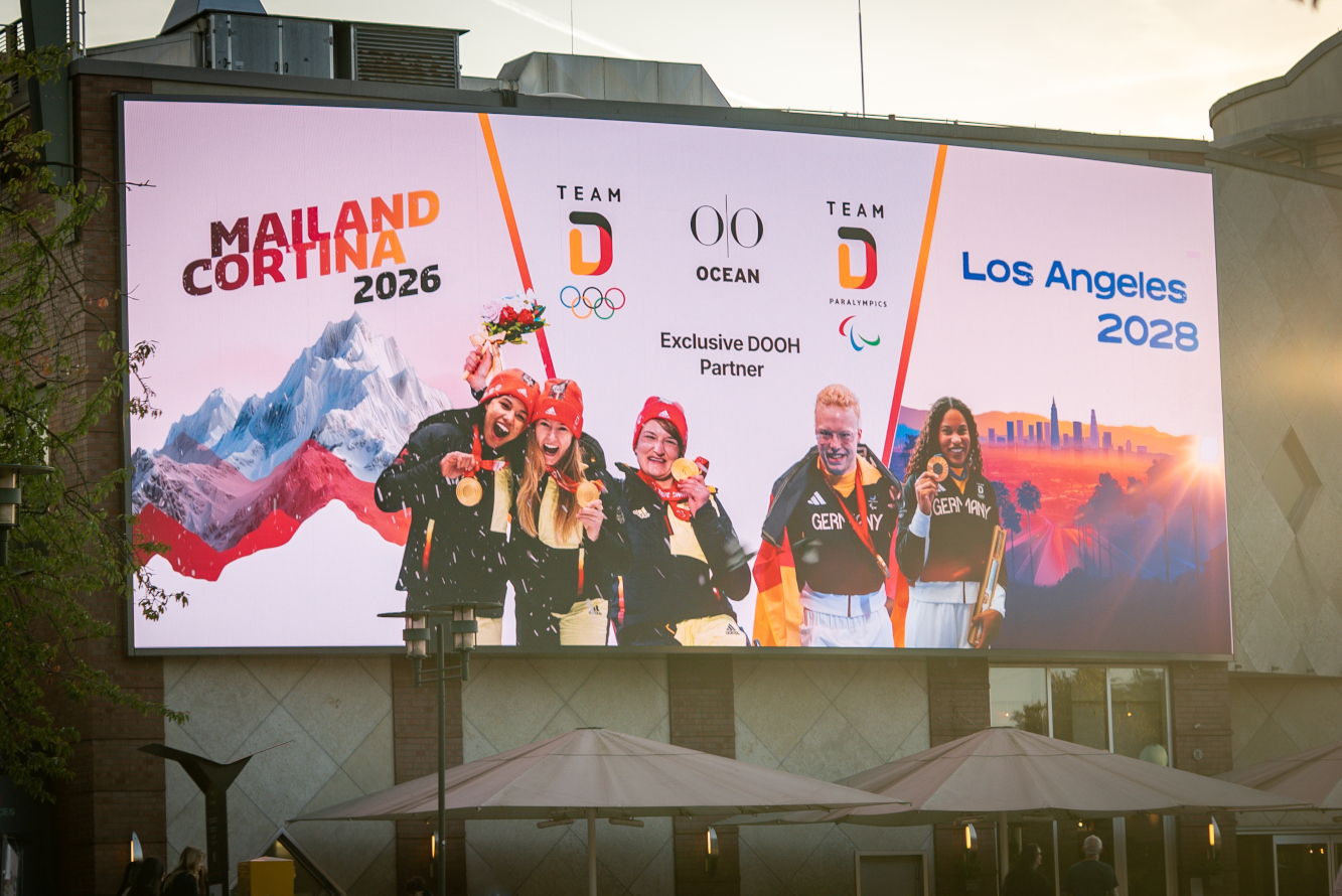 Team Deutschland und Team Deutschland Paralympics verstärken ihre Präsenz im öffentlichen Raum: Ab sofort kooperieren sie mit dem DOOH-Spezialisten Ocean Outdoor. Den Auftakt der Zusammenarbeit markiert eine Bespielung des 125 qm großen 3D-Curved-Screen im Westfield Centro Oberhausen.