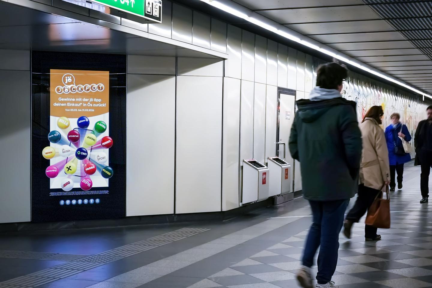 Mit 3D-Inszenierungen setzen der jö Bonus Club und der österreichische Out-of-Home-Anbieter Gewista aktuell eine Kampagne in Wien um. Die Aktion mit dem Namen „jöckpot“ zeigt das dreidimensional gestaltete Sujet auf verschiedenen Indoor-Screens in der ganzen Stadt und lässt das zentrale Kampagnenmotiv aus der Werbefläche hervortreten.