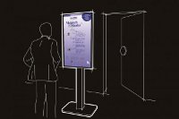 Der Monitor des digitalen Flipcharts kann im Hoch- oder Querformat installiert werden und ist durch die Höhenverstellbarkeit auch in unübersichtlichsten Situationen erkennbar.