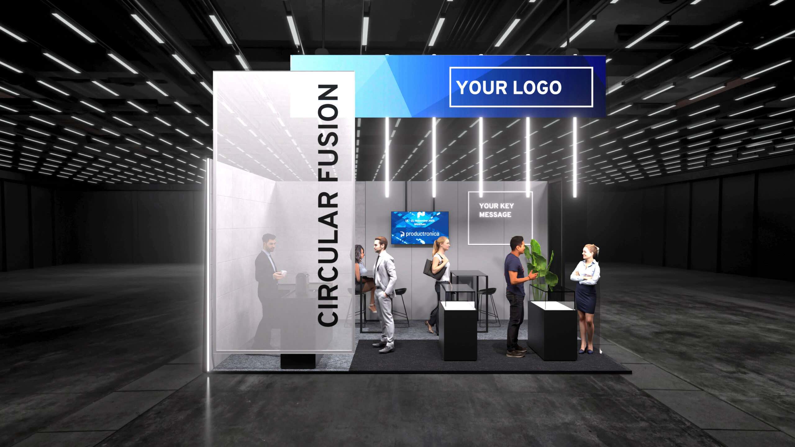 Das Konzept basiert auf einer vorkonfigurierten Standlösung, die besonders für Aussteller mit engen Zeitfenstern attraktiv ist. Durch vorgefertigte, wiederverwendbare Bauteile werden Planungsaufwand, Produktionskosten und Logistikaufwand deutlich reduziert. Gleichzeitig überzeugt das Konzept durch eine hohe Gestaltungs- und Ausstattungsqualität.
