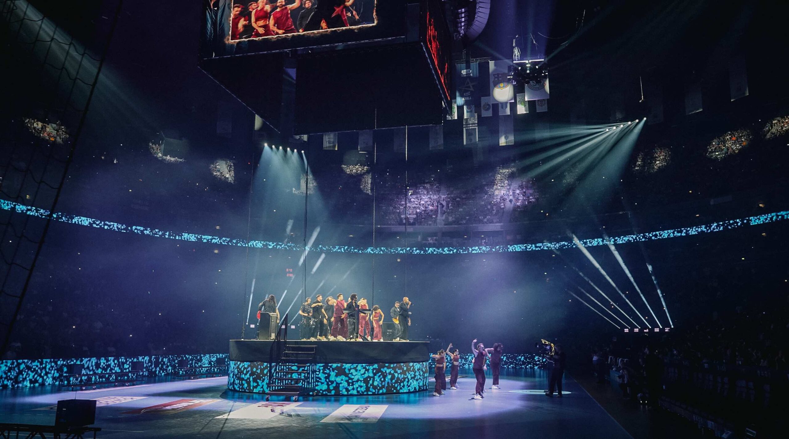 Besonderes Highlight war die präzise choreografierte Absenkung der fahrbaren Centerstage aus dem LED-Würfel der Arena. Dazu kamen szenisch eingesetzte, bewegliche Lichttraversen („Pods“) und visuelle Inhalte auf sämtlichen LED-Flächen.