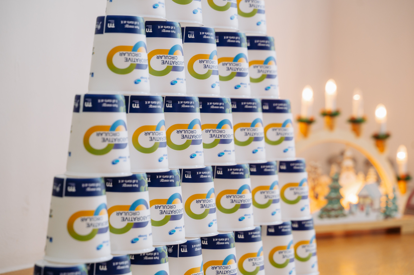 Das Pilotprojekt bei der K umfasste 50.000 Mehrwegbecher aus schäumbarem Polypropylen von Borealis, das unter Verwendung chemisch recycelter Rohstoffe aus der ReOil-Technologie von OMV hergestellt wurde. Das Projekt wurde von einer breiteren Wertschöpfungskette unterstützt, zu der auch Beiträge von Bockatech, Faerch, MCC Global IML und Arburg gehörten.