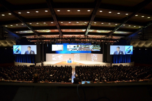 In Kooperation mit der Con Moto GmbH hat Veranstaltungsdienstleister contour am 6. November beim Wirtschaftstag der Volksbanken und Raiffeisenbanken in der Jahrhunderthalle Frankfurt einen Full-Service erbracht. Die beiden Unternehmen hatten dafür ein flexibles Setdesign entwickelt, das alle Elemente des Events gleichermaßen berücksichtige. Licht, Ton, AV-Technik und Sonderbauten wurden außerdem passgenau abgestimmt. Ein modernes Bühnenbild und TV-gerechte Bild- und Tonqualität entstanden dann aus dem Konzept.