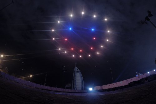 Im Rahmen eines großen Abendevents zum Nationalfeiertag der Vereinigten Arabischen Emirate in Dubai ist ein Drohnenschwarm des Ars Electronica Futurelab zum Finale einer Showinszenierung groß aufgetreten. 30 LED-bestückte Drohnen formten verschiedene Figuren – darunter ein Smiley, ein Herz, Pfeile und einige weitere geometrische Skulpturen – in den Nachthimmel. Insgesamt acht Minuten lang und bis zu 40 Meter hoch waren die Quadrocopter des Ars Electronica Futurelab dabei in der Luft. 3.500 Gäste verfolgten die Inszenierung in einem unmittelbar neben dem markanten Hotelturm Burj Al Arab errichteten Theater.