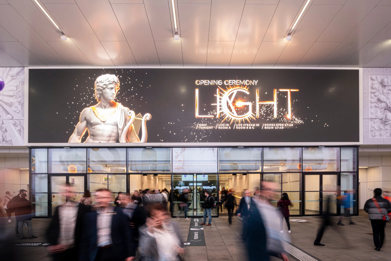 Ein zentrales Element der räumlichen Dramaturgie war die polyStage in der Eingangshalle. Die 52 LED-Paneele der Installation sowie zahlreiche weitere LED-Flächen fungierten als visueller Ankerpunkt und prägten die Inszenierung im zentralen Ankommensbereich des Kongresses. Der ECR nutzte dabei die Möglichkeiten im ACV konsequent aus: Mit präziser Content-Dramaturgie und zusätzlichem technischem Setup wurden Programm, Orientierung und Live-Momente zu einer konsistenten Kongresserfahrung verbunden.
