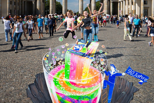 Ahoj-Brause hat es im Geburtstagsjahr 2015 mit Aktionen prickeln lassen. Kürzlich fand der finale Höhepunkt am Brandenburger Tor in Berlin in Form eines riesigen 3D-Streetart Kunstwerks statt.