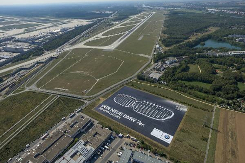 146 Meter lang und 206 Meter breit ist das Plakat, das BMW Deutschland jetzt anlässlich des Kampagnenstarts des neuen BMW 7er enthüllt hat. Positioniert wird das Airfield Poster am Flughafen Frankfurt am Main, in unmittelbarer Sichtachse der Landeanflugrichtung zur Landebahn Nord-West. Von 14. bis 27. September 2015 können so Reisende und Besucher der Internationalen Automobil-Ausstellung (IAA) 2015 schon vom Flugzeug aus einen Ausblick auf das Messehighlight von BMW sehen.