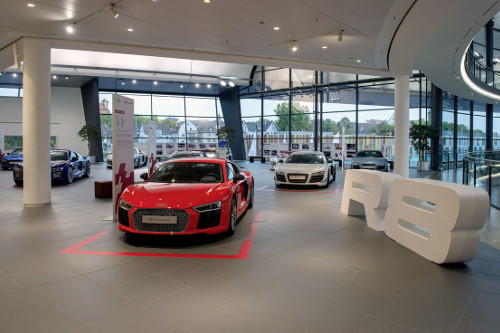 Ab sofort können Besucher bei Audi die neue R8-Manufaktur besichtigen. Dort hat das Unternehmen einen Besucherweg für geführte Rundgänge eröffnet. Erst vor rund einem Jahr nahm Audi die moderne Produktionsstätte für den Supersportwagen in den Böllinger Höfen in Heilbronn in Betrieb.