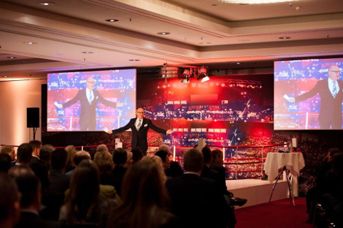 Für den Jahresauftaktevent des Alte Leipziger – Hallesche Konzerns in Stuttgart zum neuen Konzept „Vernetzt20.20” erarbeitete East End die Veranstaltungsumsetzung: Unter dem Motto „Ring frei für Runde 6“ wurden die Vertriebsmitarbeiter des Konzerns auf den bevorstehenden Change-Prozess 2016 vorbereitet, um den veränderten Kundenansprüchen besser gerecht werden zu können. Die thematische Vorlage lieferte das Musical „Rocky“, das derzeit im benachbarten Palladium Theater gespielt wird.