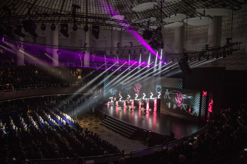 Die Entwicklung der Introshow zum Thema Industrie 4.0, bei der sieben KUKA Roboter integriert wurden, stellte eine besondere Herausforderung dar. Vor dem Hintergrund mehrerer großer LED-Screens agierten die sensitiven Leichtbauroboter auf unterschiedlich hohen Stelen gemeinsam mit den Street-Dance-Tänzern der Flying Steps in einer Live-Performance und traten gegeneinander zu einem Battle an.
