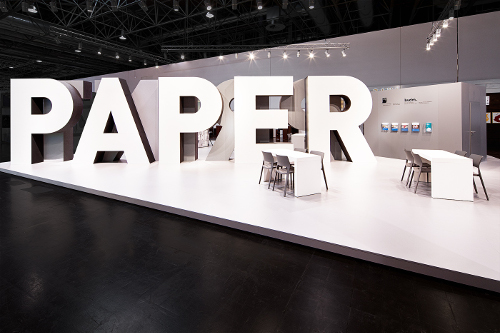 Der VDP und der bvdm haben sich auf der internationalen Leitmesse für print und crossmedia solutions erstmals mit einem Gemeinschaftsstand präsentiert. Als deutliches Statement für den natürlichen Schulterschluss der Trägerverbände standen 3,50 Meter hohe Wortskulpturen „Paper“ und „Print“ Rücken an Rücken im Mittelpunkt der Ausstellungsfläche. „Unser Ziel war es, die Botschaft von der Bedeutung und Symbiose von Papier und Print direkt mit der Standarchitektur rüberzubringen“, sagt der Bereichsleiter Presse- und Öffentlichkeitsarbeit des VDP, Gregor Andreas Geiger. „Aus unserer langjährigen Zusammenarbeit weiß Dart wie Papier „tickt“ und hat den gemeinsamen Vorschlag von VDP und bvdm perfekt umgesetzt.“