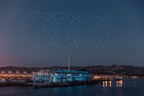 Die Intel-Drohnen setzten die Skyline San Franciscos im Rahmen einer großen Multimedia-Show in Szene. Die ersten 300 beleuchteten Flugobjekte begrüßten die Gäste aus aller Welt bereits über dem Wasser, als diese auf den historischen Craneway Pavillon in Richmond zusteuerten. Den Moment, in dem die Drohnen das bekannte Logo mit den Vier Ringen über ihren Köpfen in die Luft zauberten, nannten Gäste „elektrisierend“. Weitere 550 Drohnen zeichneten in der anschließenden Licht-Inszenierung den Schriftzug „e-tron“ in die Luft, um die Geburtsstunde des ersten elektrischen SUV zu feiern.