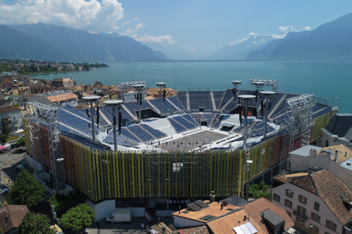 Das Nüssli-Team hatte eine außergewöhnliche Konstruktion entwickelt. Außergewöhnlich zum einen, weil die Tribünenanlage auf einem Stahlträgerrost in knapp sechs Meter Höhe steht. „Die Zuschauer auf dem obersten Rang befinden sich auf fast 20 Meter über dem Boden“, sagt Peter Tanner, COO Events Nüssli Gruppe und ergänzt: „Sie genießen damit eine uneingeschränkte Sicht auf das Geschehen auf der Bühne. Für uns allerdings bedeutete diese Spezialkonstruktion eine Herausforderung für die Montage und sie erforderte eine absolut durchdachte Materiallogistik.“