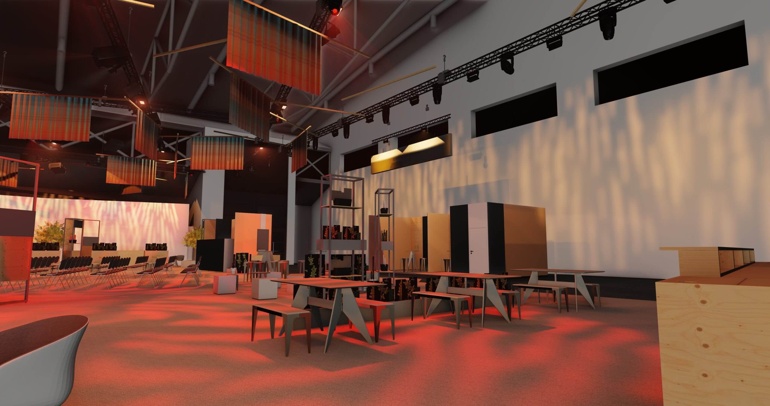 Realisiert wird die Inszenierung mit woodï, dem mehrfach ausgezeichneten Messebausystem von meplan, das seit 2021 unter anderem auf der IAA Mobility und der Expo Real erfolgreich im Einsatz ist. Bei der Expo Real 2023 realisierte meplan beispielsweise großflächige Konzepte mit dem nachhaltigen System. Außer für rund 2.500 Quadratmeter Lounge-Flächen kam woodï weitläufig in den Foren zum Einsatz.