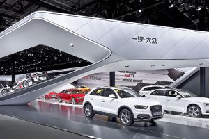 Auf der Auto China Bejing 2014 zeigte sich Audi in diesem Jahr auf 2.100 Quadratmetern. Zwei freistehende Kometen greifen dabei das Vorjahreskonzept aus Shanghai auf und definieren einen ausdrucksstarken Audi-Markenraum. Schmidhubers Konzept „The Twins“ feiert die Effizienz der Form, spielt mit Dimension und Perspektive und zieht einen dynamischen Zwischenraum zur Inszenierung der Audi-Fahrzeugflotte auf.