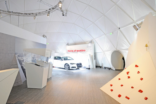 Mit der „Audi quattro lounge“ präsentiert die Marke mit den vier Ringen ihre Allradtechnologie an prominenten Plätzen deutscher Metropolen und sorgt dabei für alpine Verhältnisse in der Stadt. In überdimensionalen Kuppelzelten machen Themenwelten mit interaktiven Exponaten die ursprüngliche Idee, Sicherheit und Sportlichkeit, von quattro erlebbar. Dafür stehen mit dem neuen TT und der jüngsten Generation des A6 auch die beiden Stars der Roadshow. Im Anschluss an den Erlebnisparcours können Gäste ihren Besuch in einer als Chalet gestalteten Lounge ausklingen lassen. Ihren ersten Halt macht die quattro Roadshow seit dem 26. November in Hamburg in der Hafencity. Köln, Berlin und Oberstdorf folgen als nächste Stationen.
